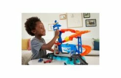 Rij door de Hot Wheels City parkeergarage, maar pas op voor de gevaarlijke haai die nietsvermoedende voertuigen aanvalt en verslindt! De speelset heeft drie activatiepunten die de haai willekeurig activeren om door het circuit te breken en de auto op te peuzelen. Haal de finish om de haai op te sluiten in de kooi, waarna de gevangen auto’s worden vrijgelaten. Inclusief een Hot Wheels voertuig, maar er zijn parkeerplekken genoeg voor meer auto’s. (Extra voertuigen zijn apart verkrijgbaar.) Koppel de speelset aan andere Hot Wheels sets en baandelen voor een unieke stad. Kleuren en versieringen kunnen afwijken. Geschikt voor kinderen vanaf 4 jaar.