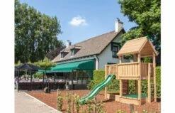 Gecertificeerd voor commercieel gebruik en compact, het ideale houten speelhuis voor scholen, een kleine kinderopvang of vakantiepark met beperkte ruimte of budget.