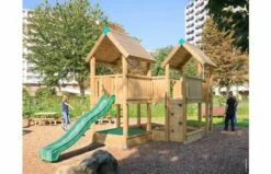 Gecertificeerd voor commercieel gebruik en compact, het ideale houten speelhuis voor scholen, een sportcomplex, kinderopvang of vakantiepark.