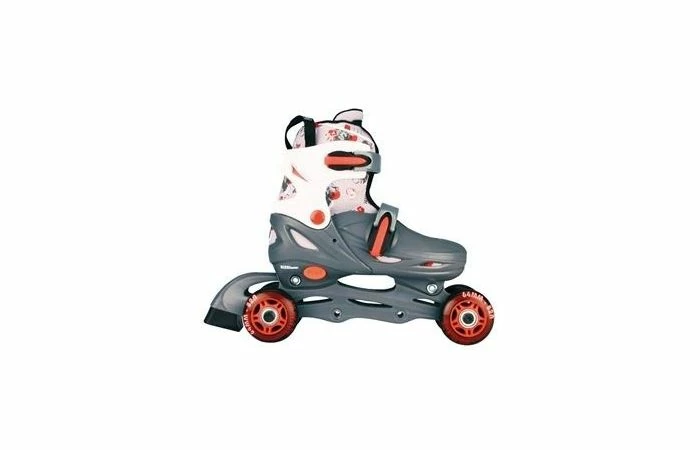 Deze grijze inline skates kun je op 3 manieren gebruiken. Dit model kan namelijk als inline skate (1x1x1x1), maar ook als quads (2×2) en trike (1x1x2) ingesteld worden. Het grote voordeel hiervan is dat de wieltjes aangepast kunnen worden naarmate je kind zich ontwikkelt. De skates hebben een harde buitenkant en uitneembare binnenschoen. Dankzij een drukknop is de maat in te stellen van 30 t/m 33.
