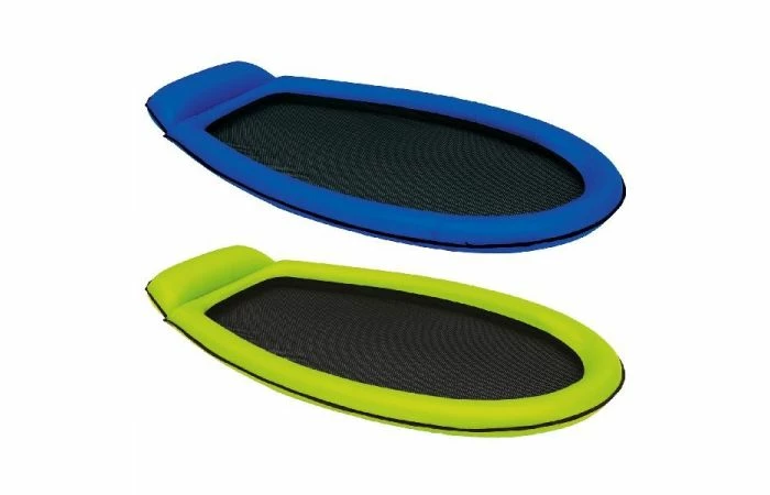 Intex Mesh mat, met opblaasbare, stofomhulde, buitenring voor duurzaamheid en comfort. De bodem is van waterdoorlatend netmateriaal, zodat je in het koele water ligt. Inclusief reparatiemateriaal. Afmetingen: 178 x 94 cm. Wordt 2 assorti kleuren geleverd in full-colour doos.
