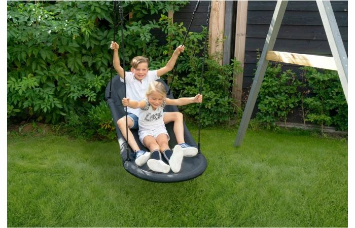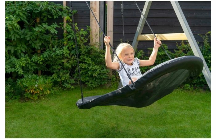 - De zwarte gevlochten touwen geven de nestschommel een mooie uitstraling en zijn eenvoudig aan te passen in lengte.