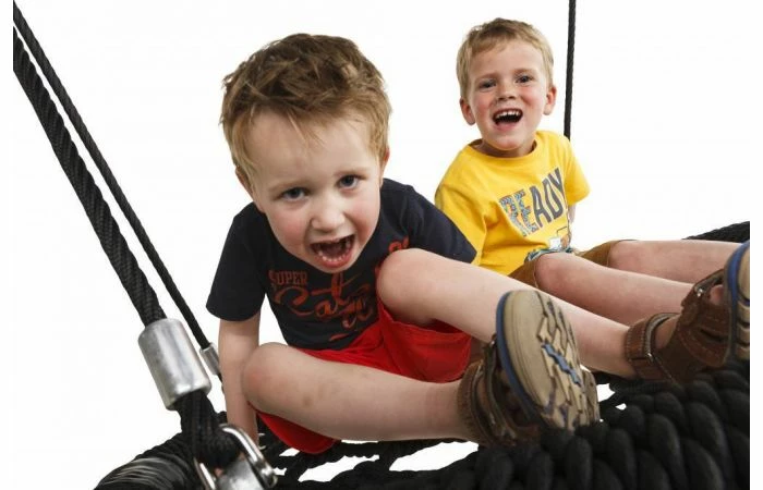 De nestschommel ‘oval pro’ van KBT is een uniek ovaalvormig ontwerp dat verkrijgbaar is in breedte 1200 en 1000 mm. De ophangtouwen zijn vervaardigd in gewapend touw met een roestvrij stalen ketting (Ø 6 mm) aan het bovenuiteinde om de ophanglengte aan te passen. De sluitingen zijn vervaardigd in kwaliteitsvol roestvrij staal. Alle bevestigingshulzen zijn vervaardigd in aluminium.