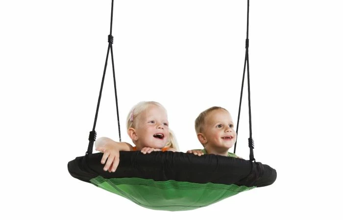 De nestschommel ‘swibee’ van KBT wordt plat verpakt geleverd in een kartonnen doos en kan eenvoudig gemonteerd worden. De zwarte gevlochten touwen geven de nestschommel een mooi uitzicht en zijn eenvoudig in lengte verstelbaar. Het stalen frame is volledig omhuld met foam om een zachte impact te verzekeren. Het stoffen materiaal is sterk maar ook aangenaam om aan te raken. Water kan eenvoudig wegvloeien. De ringen en stelachten zijn vervaardigd in gegalvaniseerd staal. De lassen op de touwen bestaan uit zwart PP.