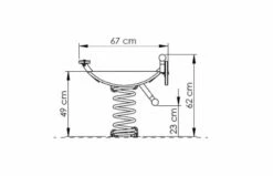 De ‘grote’ veer heeft een spoel van Ø 18mm, een diameter van Ø 170 en een hoogte van 410 mm. Er zijn twee types van verankering beschikbaar: een grondanker om in te betonneren, of een plat anker voor op beton te schroeven.