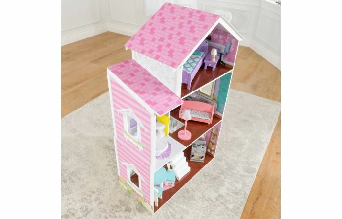Het KidKraft Glendale herenhuis is een gezellig en modern poppenhuis met drie etages en vier unieke, prachtig gedecoreerde kamers. Het huis is ruim 1,20 m hoog. Het unieke gelaagde dak geeft het poppenhuis een gezellige uitstraling. Met de 12-delige accessoireset creëren kinderen hun eigen verhalen met poppen tot 30 cm. Met de stevige, gedetailleerde plastic apparatuur en handgeschilderde houten meubels combineert dit poppenhuis schoonheid met duurzaamheid voor urenlang fantasiespel.