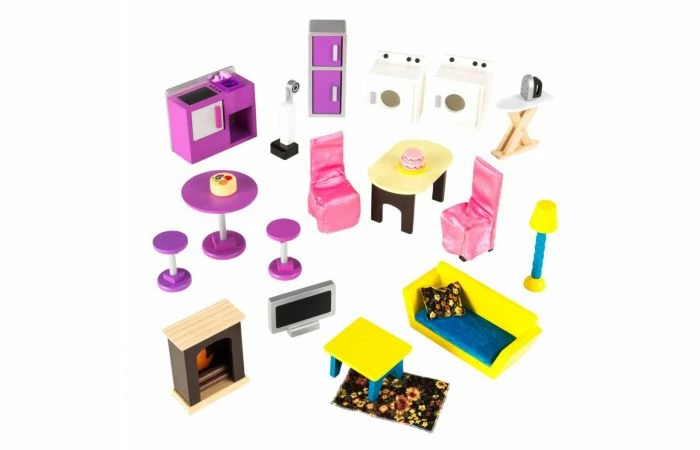 Met de rolwieltjes van het So chic poppenhuis kun je het poppenhuis draaien en verplaatsen voor nog meer speelplezier, ook met meerdere kinderen tegelijk. Het poppenhuis wordt inclusief 46 kleurige en met de hand geverfde meubelstukken geleverd en is ideaal voor modepoppen van 30 cm.