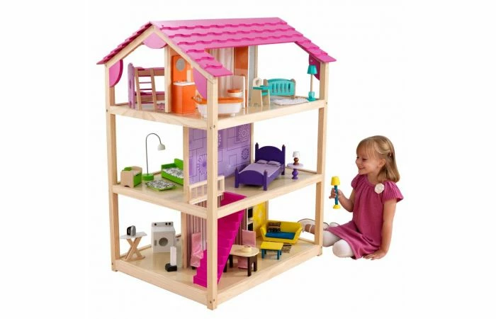 Het vrolijke en speelse So chic poppenhuis van KidKraft is het meest uitgebreide poppenhuis van KidKraft Het So chic poppenhuis van KidKraft is bijna 120 cm hoog en telt drie verdiepingen speelplezier met 10 kamers die rondom bereikbaar zijn. Omdat er geen buitenmuren zijn, kunnen kinderen rondom het hele poppenhuis spelen.