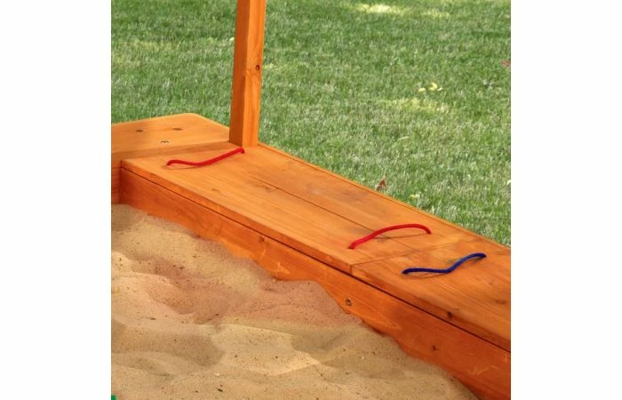 Met de buitenzandbak met zonnedak van Kidkraft kunnen kinderen in hun eigen tuin naar schatten graven en zandkastelen bouwen. Deze leuke houten zandbak is gemaakt van weerbestendig hout en is uitgevoerd met een gazen afdekking die het zand beschermt als de zandbak niet wordt gebruikt. Het zonnedak geeft de jonge ontdekkers schaduw. In de twee uitneembare kunststof bakken kan speelgoed worden opgeborgen en water of zand worden vervoerd.