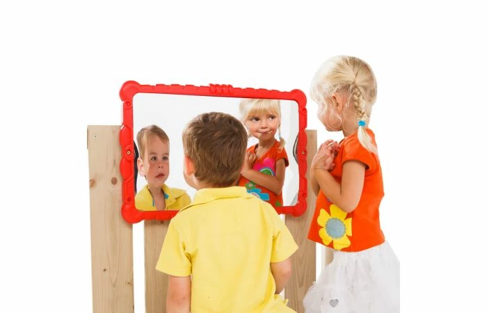 De ‘haha’-spiegel is een mooie accessoire voor het speelhuis of speeltoestel.