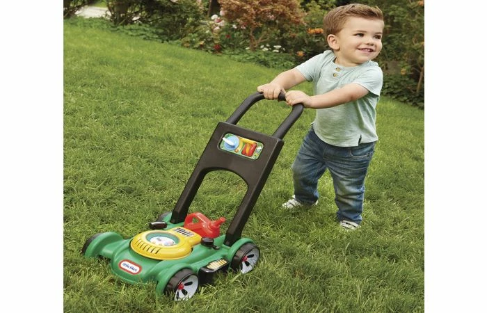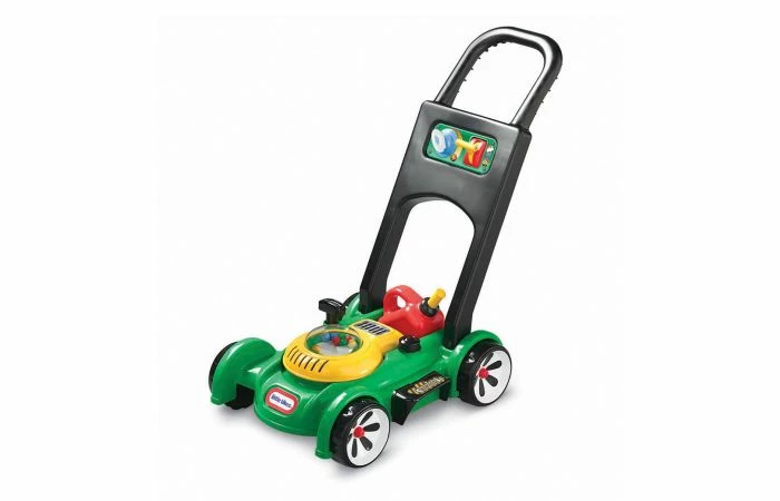 Little Tikes Gas N Go Grasmaaier. Mechanische geluiden, geen batterijen nodig. Duw-maaier, balletjes ratelen als hij geduwd wordt. Trek aan het touw van de motor om geluiden te horen. Klikkende sleutel en verstelbare gashendel. Afneembare gas-kan. Kinderen kunnen de namaak-tankdop openen en doen alsof ze de grasmaaier bijvullen. Geschikt voor kinderen tussen 12 maanden tot 6 jaar. Afmetingen: 51 x 52 x 28 cm.