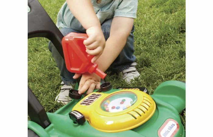 - Afneembare gas-kan. Kinderen kunnen de namaak-tankdop openen en doen alsof ze de grasmaaier bijvullen.