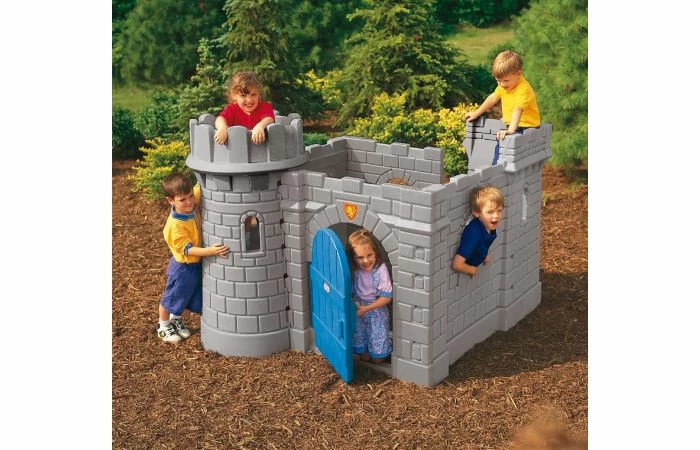 Speelhuisje in vorm van echt kasteel met klimtoren, glijbaan en open haard! Robuuste kwaliteit.