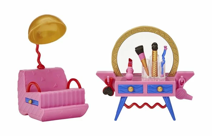 Maak kennis met Her Majesty, ze is de zus van Nia Regal en een populaire B.B. die zorgt voor de glam in glamoureus. Ben je klaar om een schoonheidsstation toe te voegen aan jouw L.O.L. Surprise! O.M.G. House of Surprises-poppenhuis? De Schoonheidsstation-speelset past perfect in de spa, zodat alle B.B.’s kunnen genieten van stijlvolle verwennerij. Elke speelset bevat een exclusieve pop, een kaptafel, een salonstoel, een haardroger, make-upkwasten, cosmetica, een make-updoos, een outfit, een tiara, een haarborstel en een fles.