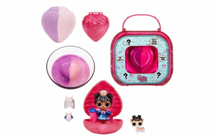 Bereid je voor op een spannende uitpakervaring met de gloednieuwe LOL Surprise colour Change Bubbly Surprise roze! Onthul een exclusieve LOL Surprise-pop en een diertje die beide verstopt zijn in een hartvormige bruisverrassing. Voeg water toe aan je exclusieve pop en het diertje voor een verrassing: het bruisende water zorgt voor een kleurverandering! Pak nog 6 verrassingen uit door verrassingsballen te openen en het zand te doorzoeken. De glinsterende verpakking kan ook als tasje en als speelset worden gebruikt. Welke van de 2 stijlen van de L.O.L. Surprise! colour Change Bubbly Surprise zou jij willen hebben? Je kunt ze ook allebei verzamelen! Bovendien kun je nu de hele colour Change-familie verzamelen met de L.O.L. Surprise! colour Change-poppen, de L.O.L. Surprise! colour Change-diertjes en de L.O.L. Surprise! colour Change Lil Sisters. Wordt geleverd in koffer met label.