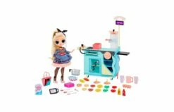 Maak kennis met de L.O.L. Surprise O.M.G. Mobiele snackbar-speelset! Pak 45+ verrassingen uit met deze gloednieuwe O.M.G.-speelset, inclusief een exclusieve modepop, Miss Sundae, en interactieve kleurveranderingen. Miss Sundae wordt geleverd met een omkeerbare outfit voor meerdere looks en heeft beweegbare ledematen voor heel veel houdingen. De speelset bevat waterfuncties en UV-kleurveranderingen. Stop de taart in de oven en zet het licht aan om te zien hoe hij gebakken wordt! Leg een burger op de barbecue en vergeet niet om omlaag te duwen op het vlees voor echte grillsporen. Vul de frituur met warm water en stop de frietjes erin om te bakken! Heb je dorst? Giet een ijskoud drankje uit de drankjesdispenser en ontdek welke limonadesmaak jij hebt! Met het ijsklontjesbakje kun je echte ijsklontjes maken! Inhoud: een L.O.L. Surprise O.M.G.-modepop, een drankjesdispenser, een iPad-kassa, meerdere kook- en keukenaccessoires, voedselaccessoires, een modieuze outfit, een haarborstel en een poppenstandaard.