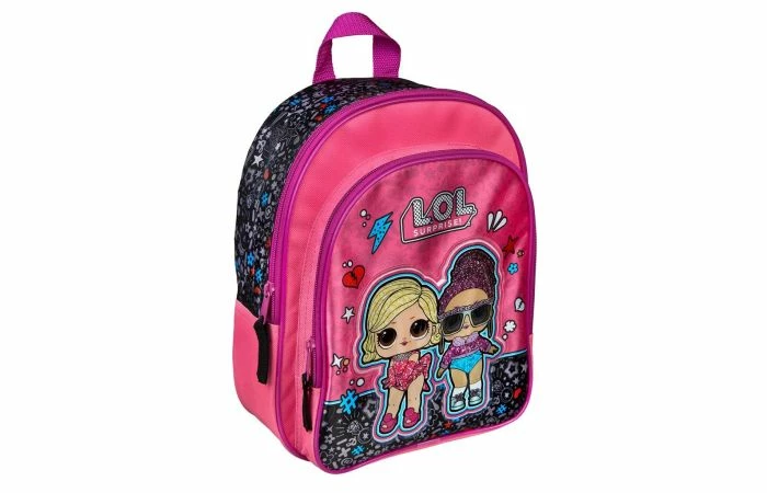 Deze LOL rugzak is perfect voor mee naar de opvang, naar de kleuterschool of mee op uitstapjes. Deze duurzame rugzak heeft een voorvak met ritssluiting en een groot hoofdvak om je spullen veilig in op te bergen. De schouderbandjes zijn verstelbaar en kunnen zo aangepast worden dat de rugzak altijd comfortabel draagt. Met een draaglus aan de bovenkant is de tas ook makkelijk in de hand te dragen en op te hangen op school. In roze uitvoering, met afbeelding van jouw favoriete LOL-karakters. Afmetingen: 30 x 25 x 10 cm. Geschikt voor kinderen vanaf 3 jaar.