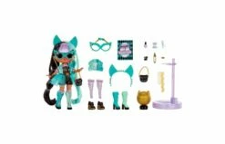 Je bent uitgenodigd voor de party van het jaar met de L.O.L. Surprise Tweens Masquerade Party-modepop Kat Mischief. Kat is de perrrr-fecte grappenmaakster. Met haar uitstekende socialemediaskills bereidt ze zich voor op een carrière als comedy-ster. Kat staat altijd klaar om te dansen. Trek haar het leren vest, de rok van tule en de laarzen aan en zet haar het masker op voor een tweede partylook. Pak 20 verrassingen uit, waaronder een Tweens-modepop met een supermooi gezichtje, prachtig haar en haar eigen punkrockstijl. Elke doos is inclusief een L.O.L. Surprise Tweens-modepop, een sprankelende jumpsuit, een leren vest, een overrok van tule, 2 paar schoenen, een veiligheidsspeld als oorbel, een handtas, een maskerademasker, een haarband met kattenoren, een make-updoosje, een make-upkwast, een armband, een discobol, een haarborstel en een poppenstandaard. Wordt geleverd in windowbox en is geschikt voor kinderen vanaf 4 jaar.