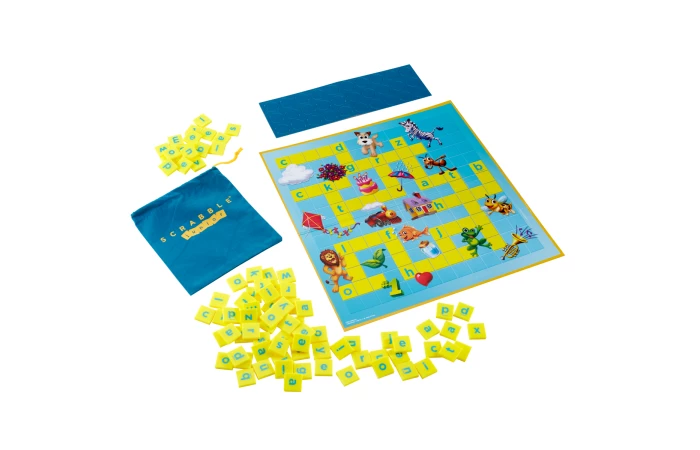 Nu kunnen kinderen genieten van Scrabble op hun niveau. Het klassieke woordspel is nog verder verbeterd! Jonge kinderen kunnen beginnen door letters te verbinden op het speelbord met tekeningen. Oudere kinderen kunnen zelf woorden maken. Dit spel helpt kinderen hun woordenschat uit te breiden en hun spelvaardigheid te verbeteren. Voor 2 tot 4 spelers vanaf 5 jaar.