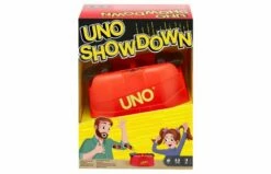 UNO Showdown is een kaartspel dat iedereen leuk vindt, maar met de onverwachte spanning van een plotselinge kaartenregen! Wanneer het lichtje aangaat en het signaal van de UNO Showdown unit afgaat, moet je zo snel mogelijk het pedaal omlaag duwen. De snelste speler wint de showdown en laat kaarten uit de UNO Showdown naar de andere spelers vliegen! De spelers proberen zo snel mogelijk al hun kaarten uit te spelen door een bijpassende kaart in hun hand op de bovenste kaart van de stapel te leggen. En vergeet niet UNO te roepen als je nog één kaart over hebt! Leuk voor een spelletjesavond met kinderen, volwassenen of het hele gezin. Geschikt voor 2 tot 10 spelers vanaf 7 jaar.