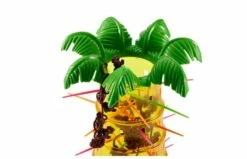 - 1 felgele transparante palmboom van plastic (zodat je de aapjes ziet wiebelen als je ze aan hun krulstaartje aan de plastic stokjes vastmaakt.)
