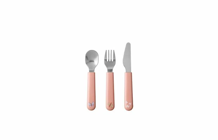 Jouw kleintje wil alles doen wat jij ook doet. Met mes en vork eten hoort daar ook zeker bij! De bestekset Mepal Mio, met Little Dutch Flowers and Butterflies print, is dan ideaal. Het setje bestaat uit een vork, mes en lepel. Voor de veiligheid is het mes slechts aan één kant voorzien van een snijkant. Het kunststof handvat zorgt ervoor dat jouw zoon of dochter het bestek goed vast kan houden. Het bestek zelf is gemaakt van roestvrij staal, voor langdurig plezier. Natuurlijk mag de set na gebruik gewoon in de vaatwasser en is hij BPA vrij. Deze kinderbestekset is geschikt voor peuters en kleuters, vanaf 2 jaar.