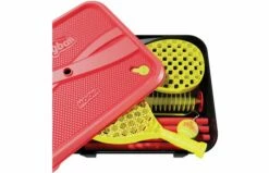 De Classic All Surface Swingball wordt geleverd met een echte tennisbal, 2 tennisrackets en een in hoogte verstelbare paal (tot 1,65 m hoog).