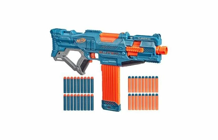 Deze Nerf Elite 2.0 Turbine CS-18-blaster heeft 4 tactische rails en een bevestigingspunt voor een loop, zodat je hem kunt aanpassen voor elke missie en elk gevecht. Deze gemotoriseerde blaster heeft een magazijn voor 18 darts en vuurt razendsnel als je de acceleratieknop ingedrukt houdt om de motor te starten en vervolgens de trekker overhaalt voor een spervuur. De set bevat 36 officiële Nerf-darts. Je kunt er 18 in het magazijn laden en de andere 18 bij je houden als reserve. Schiet darts tot 27 meter ver. Loopverlenger en oogbescherming niet inbegrepen. Geschikt voor kinderen vanaf 8 jaar.
