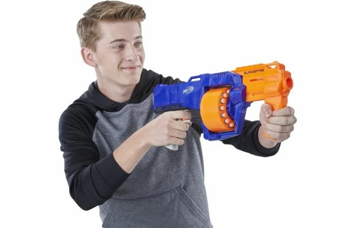 - NERF SurgeFire blaster met draaiend magazijn (geschikt voor 15 darts)