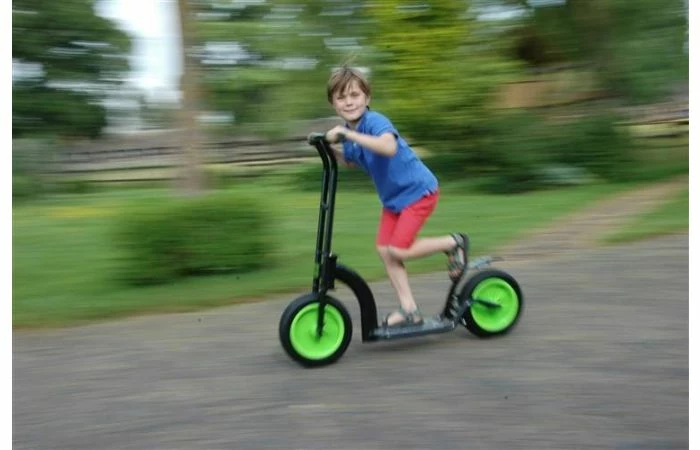 De Bikez-step klein (4-6 jaar) heeft wielen met dubbele, metalen kogellagers. Spelingvrij, dus ideaal in combinatie met zand. De step is ook uitgerust met een veilig stuur, comfortabele banden met hoogwaardige schuimvulling en een veilige rem.