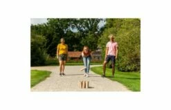 Het populaire werpspel uit Scandinavië speel je nu eenvoudig in de tuin! Inhoud: 12 genummerde kegels, een werpstokje en een tasje.