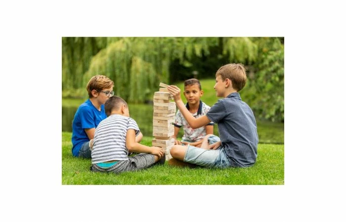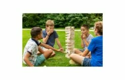 Bouw de toren zo hoog mogelijk en laat de blokken niet vallen! De grote robuuste blokken zijn vervaardigd van hout. Geschikt voor binnen en buiten. Inhoud: 60 houten blokken ( 12 x 4 x 2,5 cm). Geschikt voor kinderen vanaf 5 jaar.