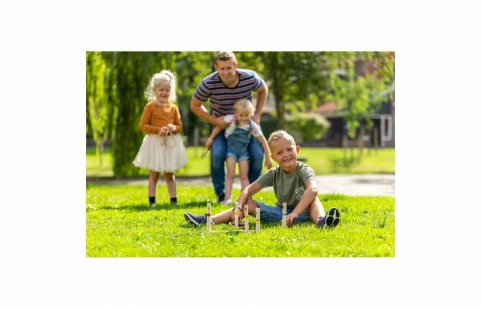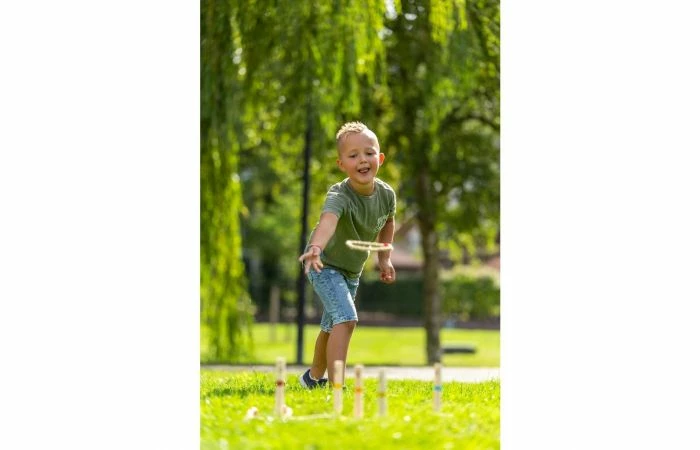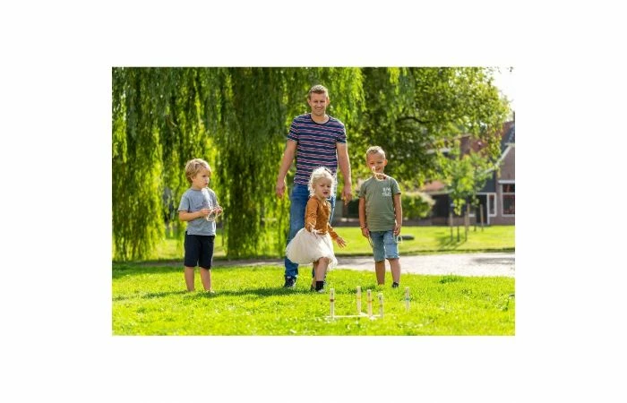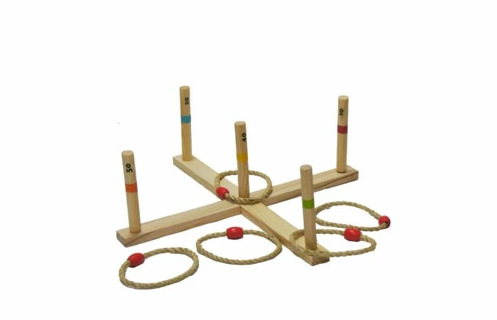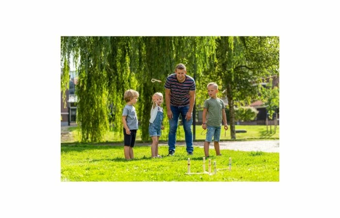 - Inhoud: 5 ringen touw en 5 palen van 15 cm hoog.