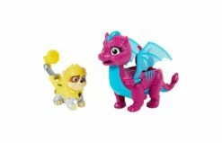 Ga mee met je favoriete pups en hun nieuwe drakenvriendjes, en beleef spannende reddingsmissies met de Rescue Knights Pup en Draak-sets. Deze set actiefiguren bevat Rubble en zijn trouwe drakenvriendje Blizzie. De geliefde pup van Paw Patrol draagt zijn Rescue Knights-harnas en is klaar om in actie te komen. Druk op de badgeknop van Rubble om het gereedschap in zijn rugzak te transformeren en open te klappen. Klem Rubble vervolgens op de rug van Blizzie en druk op de knop op de staart om de glinsterende, doorzichtige vleugels te laten bewegen. Deze geweldige set brengt al het middeleeuwse plezier van de populaire tv-serie tot leven. Verzamel alle Rescue Knights Pup en Draak-sets en gebruik je fantasie om keer op keer je eigen reddingsmissies te verzinnen. Inhoud: 1 Paw Patrol-figuur, 1 draakfiguur. Wordt geleverd in touchbox. Geschikt voor kinderen vanaf 3 jaar.