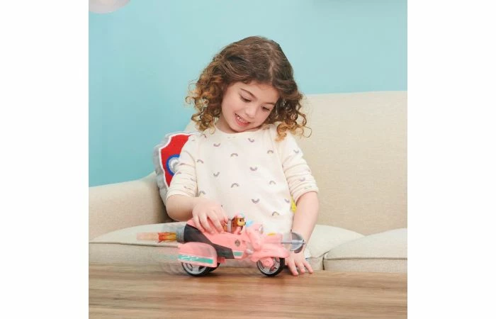 Liberty’s gave stadsvoertuig heeft zilveren metallic verf, authentieke filmdetails en graphics, een projectielwerper en een raketboost die rechtstreeks uit de film komt. Liberty is klaar om de redder in nood te zijn in Avonturenstad in haar filmuniform. Klik Liberty vast achter het stuur als er problemen zijn en race naar de noodsituatie. Voor extra snelheid druk je op de knop achterop om de raketboost te activeren: als je Liberty’s voertuig vooruit duwt, draait de vlam. Laad het grijphaakprojectiel voor in het voertuig en druk op de knop om het te lanceren. Liberty en haar voertuig brengen de actie en de spanning van het witte doek tot leven. Wordt geleverd in touchbox. Geschikt voor kinderen vanaf 3 jaar.