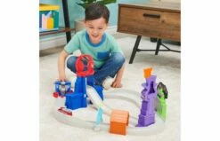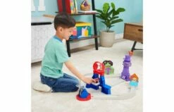 Dit PAW Patrol-speelgoed heeft een draaiende lanceerder voor meerdere op de film geïnspireerde reddingsacties. Lanceer Marshall richting de gehoorzaamheidsschool of draai het platform en lanceer hem naar het stadhuis. Met 3 filmreddingsacties om Avonturenstad te redden: barst door de muur van de gehoorzaamheidsschool, stop het vuurwerk in het stadhuis en vang burgemeester Humdinger. Als de toren opensplijt, zie je de burgemeester in zijn ondergoed staan. Deze spannende PAW Patrol-speelset bevat een metalen Marshall-voertuig op een schaal van 1:55, dat niet mag ontbreken in je PAW Patrol-voertuigcollectie. Moet door een volwassene in elkaar worden gezet. Inhoud: 1 Red Avonturenstad Racebaan Speelset, 1 True Metal-voertuig, 1 stickervel en een gebruiksaanwijzing. Wordt geleverd in full-colour doos. Geschikt voor kinderen vanaf 3 jaar.