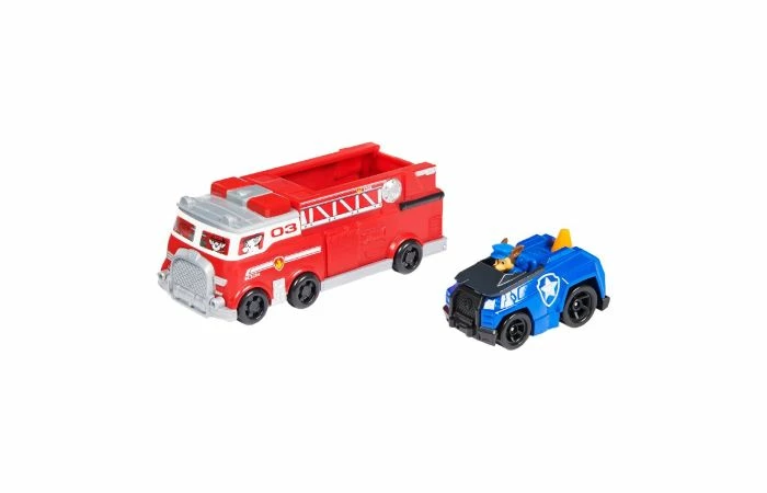 Dit grote die-cast teamvoertuig is het grootste Paw Patrol True Metal-voertuig tot nu toe. Het is meer dan 12,7 cm lang en wordt geleverd met een Chase-reddingsvoertuig op schaal 1:55, dat je rechtstreeks in de Ultimate Brandweerwagen kunt rijden. Laat de oprijplaat aan de achterkant zakken en rijd het reddingsvoertuig van Chase zo de brandweerauto in. Klap de plaat op en rijd van de ene spannende reddingsmissie naar de andere. In de True Metal Ultimate Brandweerwagen kun je alle Paw Patrol True Metal-voertuigen van schaal 1:55 uit je collectie opbergen, extra speelgoedvoertuig’s worden afzonderlijk verkocht. Inhoud: 1 True Metal Ultimate Brandweerwagen, 1 True Metal Chase-reddingsvoertuig schaal 1:55. Wordt geleverd op blisterkaart. Geschikt voor kinderen vanaf 3 jaar.