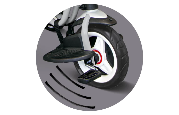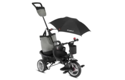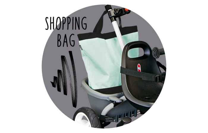 De symbiose van functionele driewieler en comfortabele buggy. Onmogelijk? PUKY Ceety Comfort combineert alle voordelen van beide voertuigwerelden. Ouders blijven mobiel bij hun favoriete kinderen en kunnen gemakkelijk boodschappen doen of genoeg eten meenemen voor het bezoek op de speelplaats. De grote boodschappentas en de accessoiretas op de duwstang zijn slechts twee van de vele andere kenmerken. Naast een flexibele paraplu heeft CEETY Comfort een afneembare kiepbak en een draaiende speelbel geschikt voor kinderen. Het voertuig is uitgerust met een veilig 3-punts gordelsysteem, dat uw kind stevig in de stoel houdt, maar de bewegingsvrijheid niet beperkt. De aandrijving, die is uitgerust met een vrijloop, kan optioneel worden vergrendeld. Een afneembare antislip voetensteun met hoekverstelling dient als voetensteun tijdens de rust-/schuiffase. Hierdoor kun je het slapende kind gemakkelijk en veilig vervoeren. De onderhoudsvrije comfortbanden en kogelgelagerde wielen garanderen een rustige loop en een lange levensduur. Het standaardrepertoire omvat natuurlijk ook veiligheidsstuurgrepen en een slagvaste poedercoating. PUKY CEETY Comfort is verkrijgbaar in de kleuren mint en grijs.