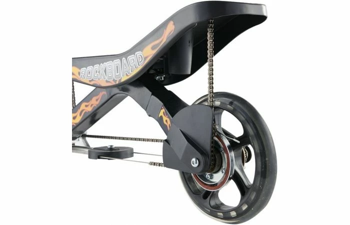Stap op de Rockboard scooter met beide voeten en “rock” de voetenplank. Dit activeert de ketting, die er vervolgens voor zorgt dat de Rockboard scooter vooruit gaat. Rockboard scooter is de grootste hit in de Europa en de VS. The Rock Board Original.