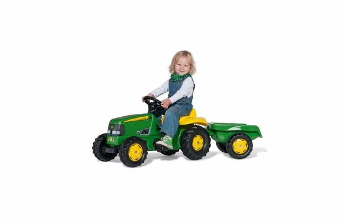 John Deere traptractor is voorzien van meegeleverde bijpassende aanhanger en koppelingsbout. Ontdek het boerenleven met deze super mooie tractor. De motorkap kan open voor nog meer speelplezier en de transmissieketting is volledig afgeschermd. Verder wordt de traptractor geleverd met een aanhanger en is geschikt voor kinderen van 2,5 tot 5 jaar.