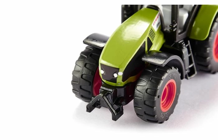 De Claas Axion 950 is het topmodel van de Axion-serie. Bij een toerental van 1.600 RPM wordt er al een vermogen van 410 PK geleverd. Hiermee wordt geluidsarm en efficiënt rijden mogelijk. Op de brede rubberbanden met tractorprofiel is de tractor ook in de miniatuuruitvoering goed toegerust voor zware taken. Alle SIKU aanhangers uit de BLISTER serie kunnen aan de trekhaak worden gehangen.
