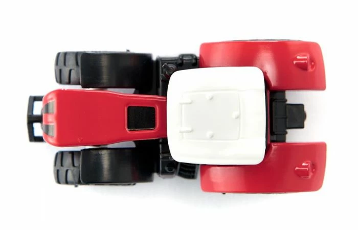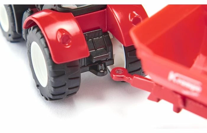 De kleine rode tractor rolt het land op – Deze kleine rode tractor heet Mauly X540. Hij gaat met rubberen banden de weg op maar kan ook op het veld snel en veilig uit de voeten. De cabine is afneembaar en aan de koppeling kunnen alle siku aanhangers worden bevestigd.
