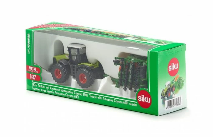 Dit specialistenduo heeft zich allang een plaats veroverd in de grootschalige landbouw: Met de Claas Xerion en de krachtige zaaimachine Amazone Cayenna 6001 is de agrarische landbouwcombinatie op de fijn uitgevoerde schaal 1:87 compleet. Net als bij het grote voorbeeld kunnen de zaai-eenheden voor gebruik op het veld aan de linker- en rechtkant net als het origineel worden neergelaten. Bovendien kan de vulklep op de zaaimachine open. De banden van de aanhanger maken dankzij hun rubber bekleding een echte alledaagse indruk. Zowel de Claas-systeemtrekker als de Amazone Cayenna 6001 springen vanwege hun merktypische kleurstelling en hun opvallende design in het oog.