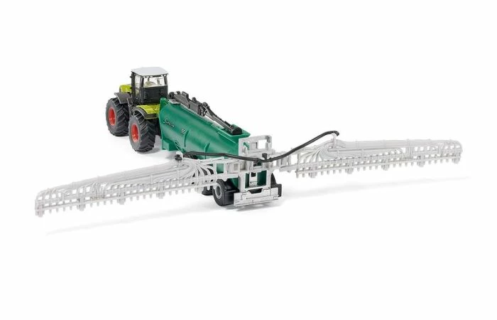 Voor de liefhebbers van de 87-voudig geminiaturiseerde landbouwmachines voldoet deze voertuigcombinatie aan alle wensen! De systeemtrekker Claas Xerion trekt de imposante Samson-vatwagen, die natuurlijk ook kan worden losgekoppeld. Bijzonder imposant: De getrouw naar het origineel nagebootste sleepslangverdeler aan de achterkant van de vatwagen kan over een indrukwekkende werkbreedte uitzwenken. Het cabinedak van de Claas Xerion is natuurlijk afneembaar, de rubberen banden zorgen voor een machtige tractie. De bedrukking is uitgevoerd in een fijne print.