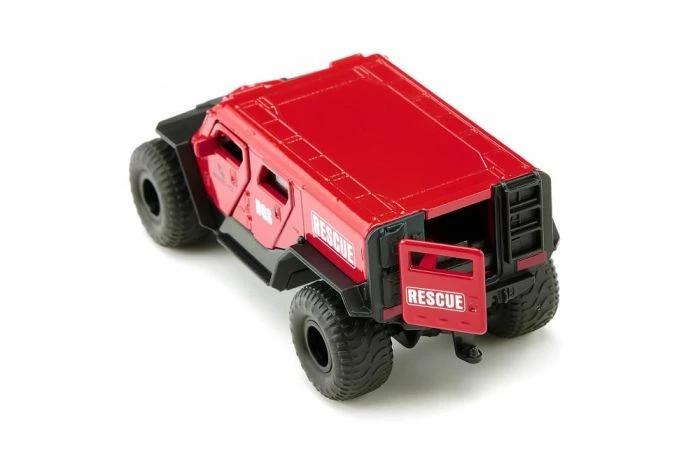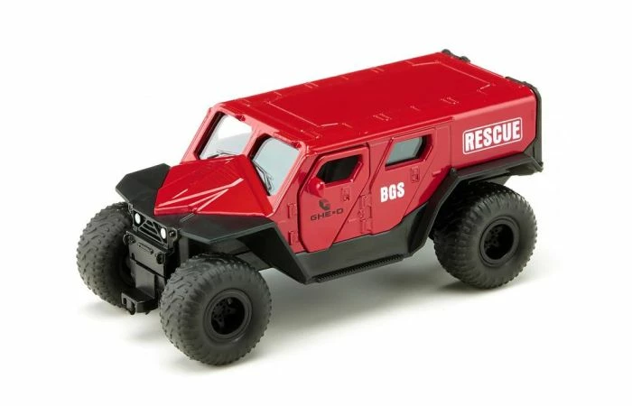Dit hulpvoertuig heeft geen sirene of zwaailicht nodig. Aangedreven door een krachtige V8-motor baant de futuristisch vormgegeven monstertruck GHE-O Rescue zijn weg. Met de geveerde voor- en achteras en de grote ballonbanden is dit model ook uitstekend geschikt voor onbegaanbaar terrein. De banden kunnen worden afgenomen. Bij het model op schaal 1:50 kunnen de voordeuren en de achterdeur worden geopend zodat de brancard met het slachtoffer in het voertuig kan worden geschoven. Reddingmissie geslaagd!