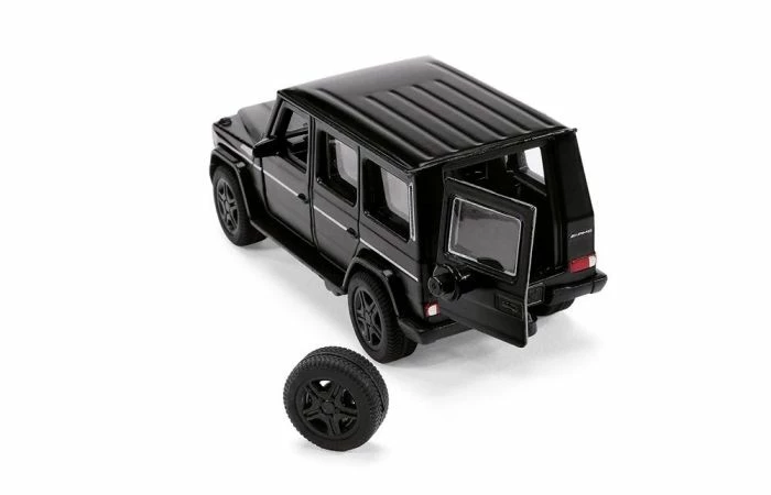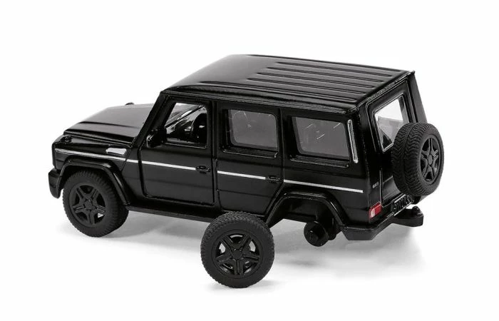 De als origineel meer dan 600 pk sterke 12-cilinder laat de G met grote kracht elegant voortbewegen over de weg, en meedogenloos op ruw terrein. De nieuwste innovatie van SIKU zit in de wielen. Deze kunnen voor de eerste keer worden verwijderd, zodat een servicebeurt of een situatie met pech in de kinderkamer kan worden nagespeeld.