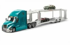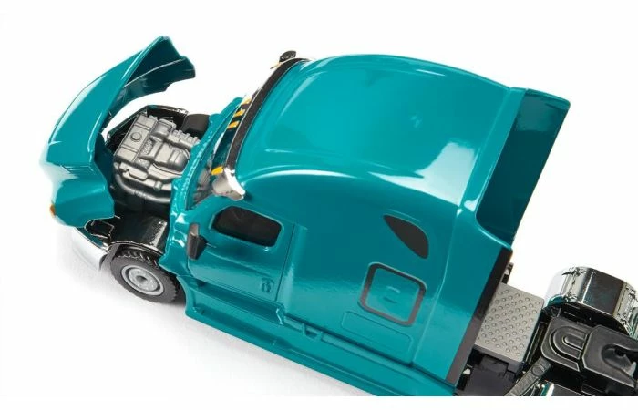 Een Freightliner is namelijk een bijzonder robuust en betrouwbaar voertuig dat dag in, dag uit ook onder de zwaarste omstandigheden kan worden ingezet. Het nieuwe model Cascadia, een indrukwekkende truck met een drie-assig chassis, is het vlaggenschip in het segment voor de lange afstand en wordt gekenmerkt door een indrukwekkende combinatie van de modernste techniek, efficiëntie en veiligheid. Er is vanzelfsprekend ook aan de chauffeur gedacht: achter de chauffeurscabine bevindt zich een reusachtige slaapcabine als comfortabele rustomgeving voor onderweg. Door de kleurstelling in “Miami-blue” met verchroomde elementen komt het opvallende design van de truck bijzonder goed tot z’n recht. De motorkap kan geopend worden. Bij het siku model gaat het om een solo trekker die door de geïntegreerde standaardkoppeling met alle opleggers uit de siku Super serie kan worden gecombineerd.