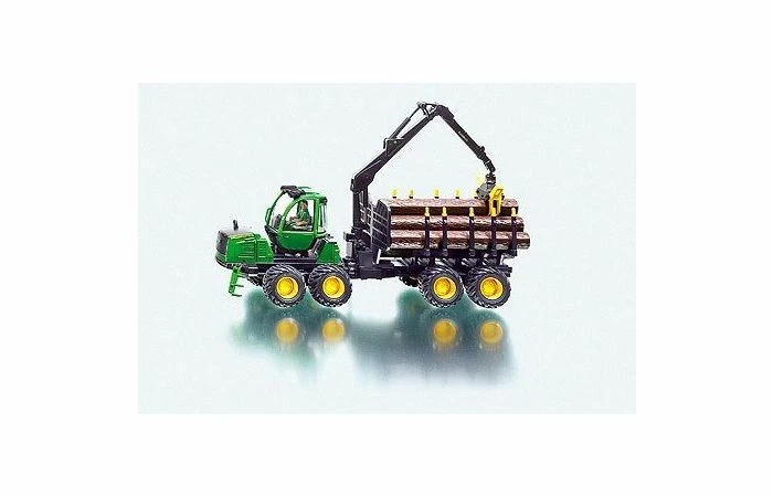 De 4-assige John Deere Forwarder transporteert de gekapte boomstammen naar de plaats waar ze worden afgevoerd. Het model is uitgerust met een draai- en zwenkbare laadkraan zodat je de boomstammen net als in het echt kunt op- en afladen.