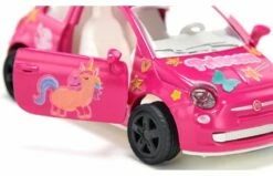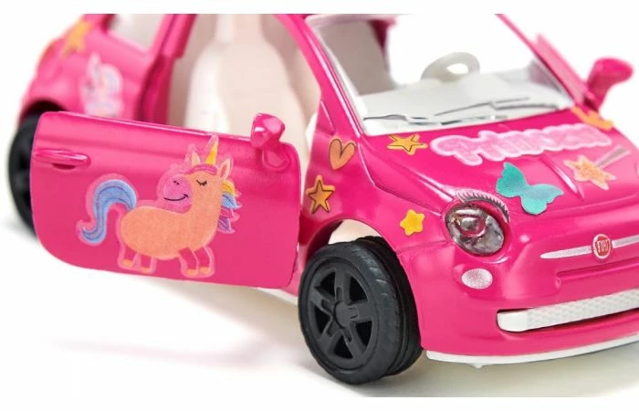 Wij betreden de wereld van de glamour – Prinsessen rijden op een eenhoorn of in een Fiat 500. En dan niet zomaar eentje maar in het roze. Het plezier begint al bij het in elkaar zetten van de losse onderdelen. Klaar! Nog niet want met de autostickers kan het snoezige cultmodel individueel worden gedecoreerd. Mag het een beetje glitter zijn? Of misschien een glinsterend kleurtje, of een regenboog? Of geeft de prinses misschien de voorkeur aan een eenhoorn op de auto? Een prachtig geschenk voor en met vrienden.