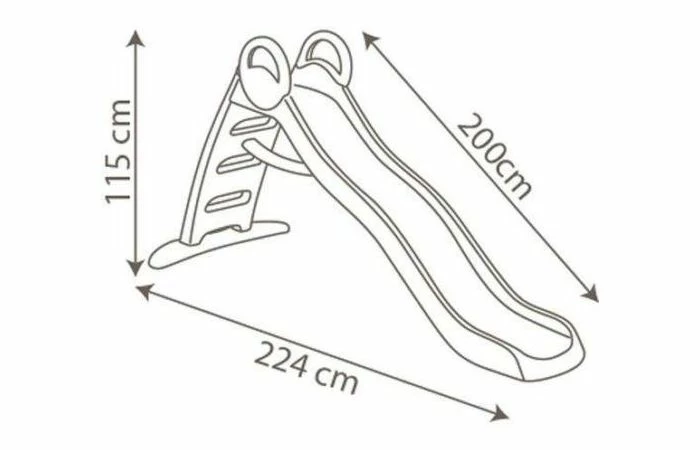 Met slechts 3 treden ben je al boven, waarna je over de golvende glijbaan geleidelijk naar beneden gaat.